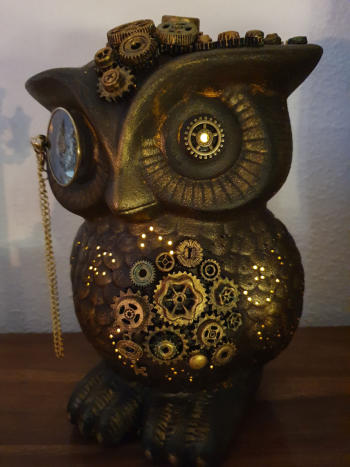 Steampunk Eule beleuchtet